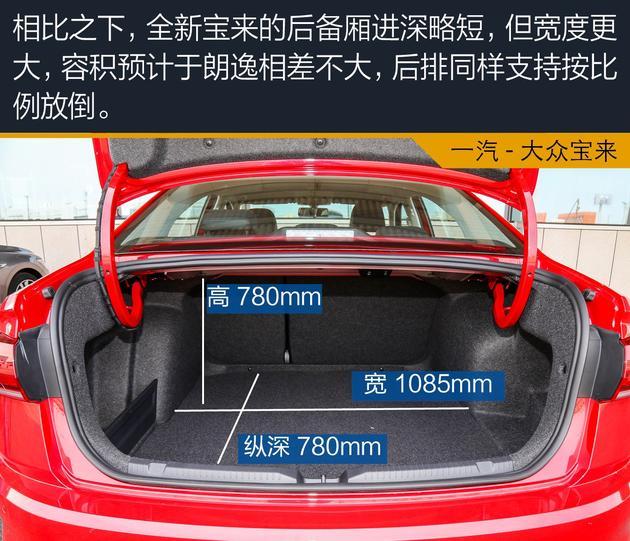 小结:值得大家注意的是,虽然两车轴距都为2688mm,但车身尺寸并不相同。这点差异主要体现在两车的后备厢空间上,简单来说,全新朗逸的后备厢更深,而全新宝来的后备厢更宽。