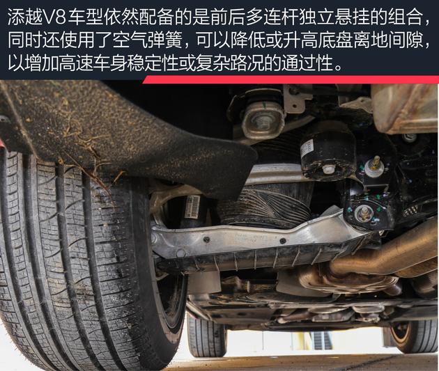添越V8使用了来自ZF的8AT变速箱,还有8种驾驶模式调节的全时四驱系统,前后桥可进行最大40:60的扭矩分配。在这里丝滑顺畅的变速体验才会让舒适的座椅、强劲的动力变得更有价值。