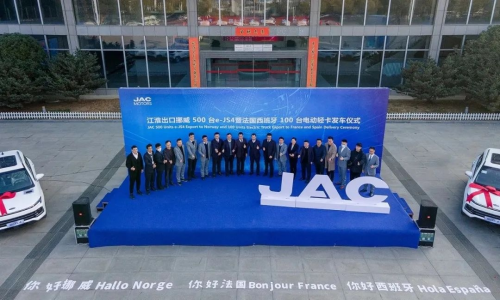1月11日,江淮汽车在技术中心举行出口挪威500台e-JS4暨法国西班牙100台电动轻卡发车仪式,标志着江淮汽车新能源电动车业务正式登陆北欧、西欧等传统汽车工业强国。